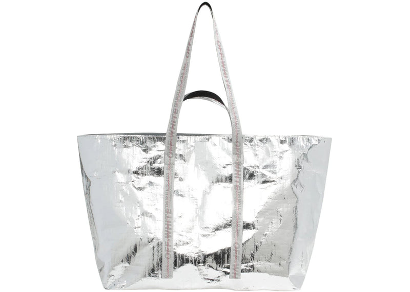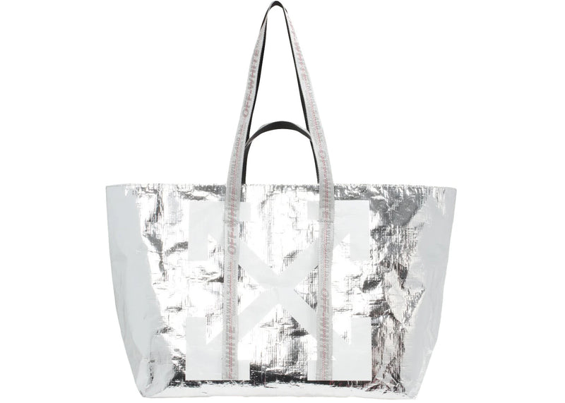 The OFF-WHITE Arrows Tote Bag Silver White is now available at Side Kicks!