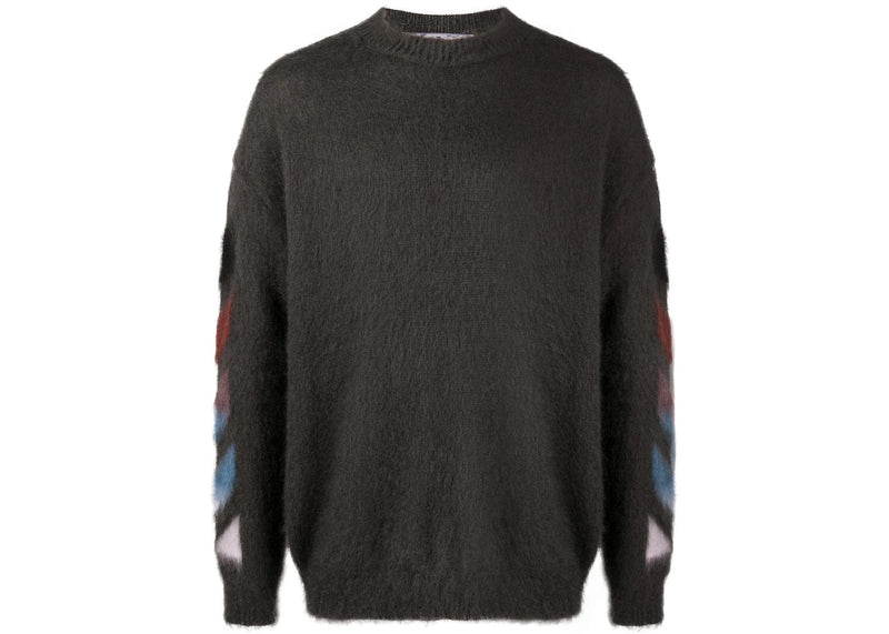 The OFF-WHITE Brushed Mohair Diag Stencil Arrows Knit Sweater Grey/Rainbow is now available at Side Kicks!