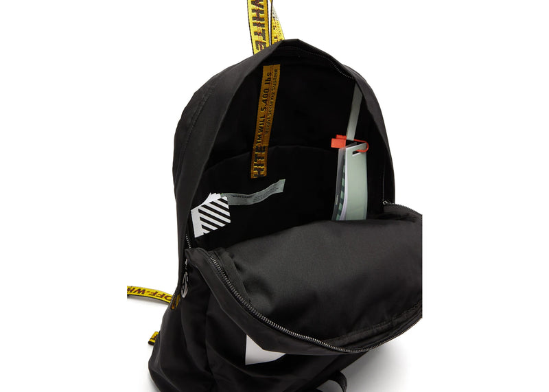 The OFF-WHITE Easy Backpack Black White Yellow is now available at Side Kicks!