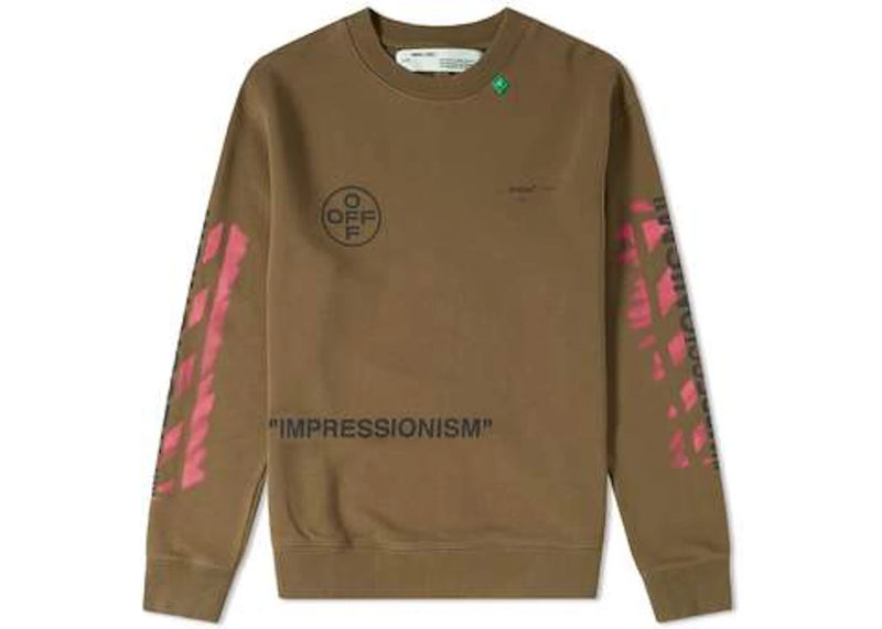 The OFF-WHITE Impressionism' Diag Stencil Sweatshirt Army Green/Pink/Black is now available at Side Kicks!