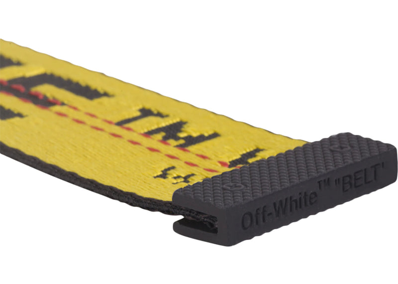 The Off-White Mini Industrial Belt is a scaled-down version of the original, featuring a thinner design. It retains the signature yellow and black Off-White branding and black clips. Released on the original launch date, the Off-White Mini Industrial Belt is available now at Side Kicks.