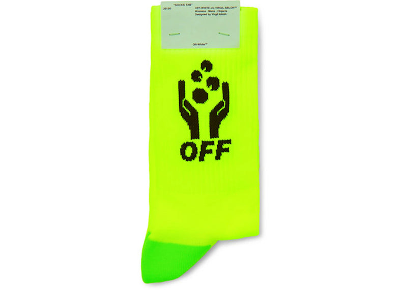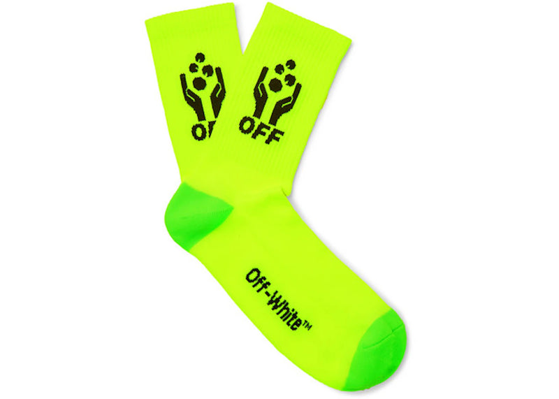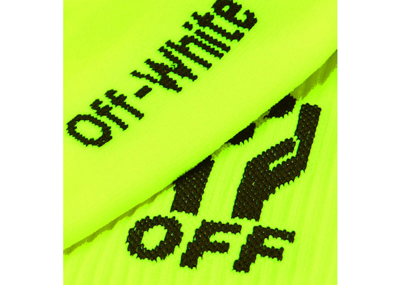 The OFF-WHITE Logo Intarsia Stretch Knit Socks (SS19) Neon Yellow/Neon Green/Black is now available at Side Kicks!