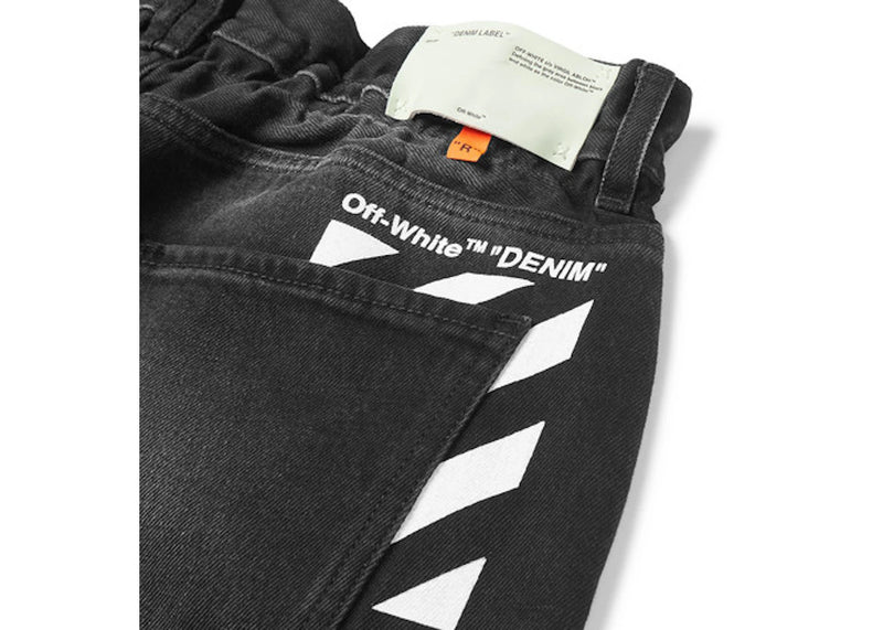 The OFF-WHITE Slim Fit Logo Print Washed Denim Jeans Charcoal/White is now available at Side Kicks!