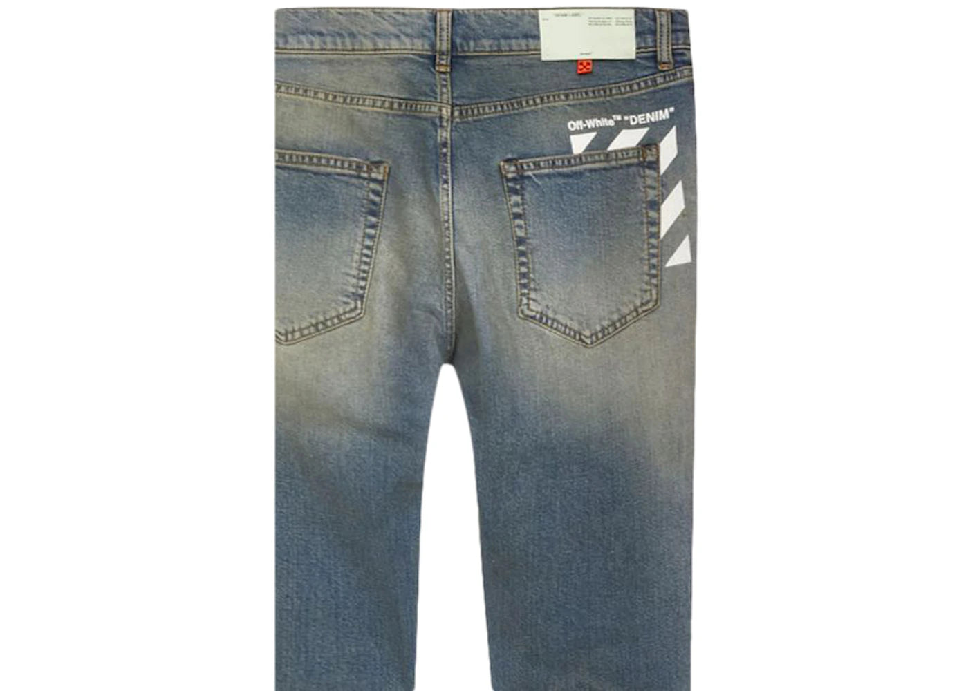 The OFF-WHITE Split Slim Fit Denim Jeans Vintage Wash/White is now available at Side Kicks!