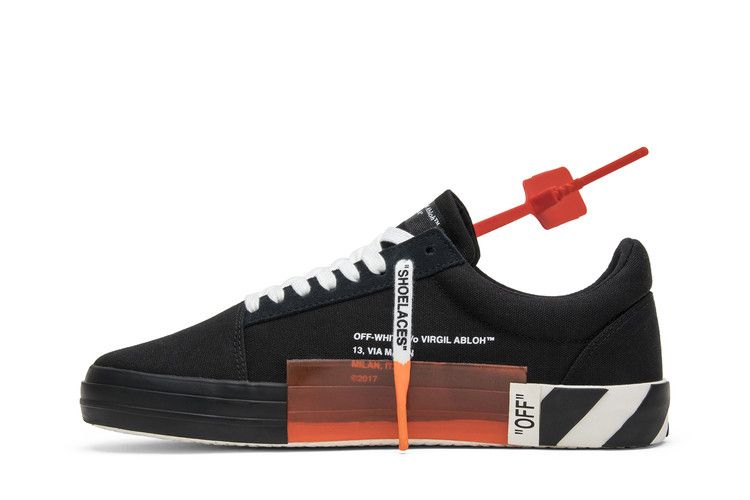 The OFF-WHITE Vulc Low Black is now available at Side Kicks!