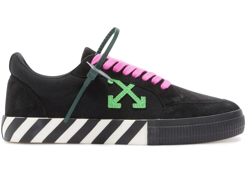The OFF-WHITE Vulc Low Canvas White Light Pink Grey has a white canvas upper with a one-piece toe box stitched to the side panels. Light pink branding arrows appear on...