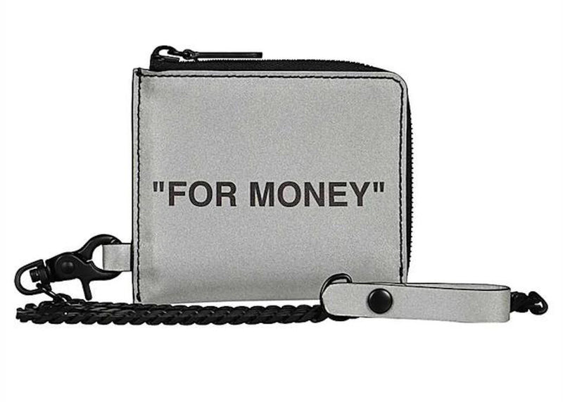 OFF-WHITE Zip Chain Card Case "For Money" (2 Card Slot) Silver
