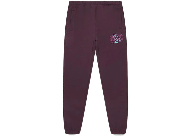 The OVO Neon Light Sweatpant Wine/Pine is now available at Side Kicks!