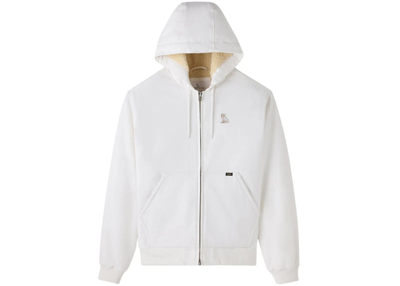 The OVO Sherpa Lined Hooded Work Jacket White is now available at Side Kicks!