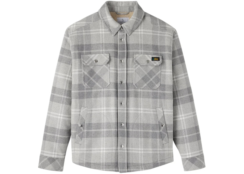 The OVO Sherpa Lined Shirt Jacket Heather Grey Plaid is now available at Side Kicks!