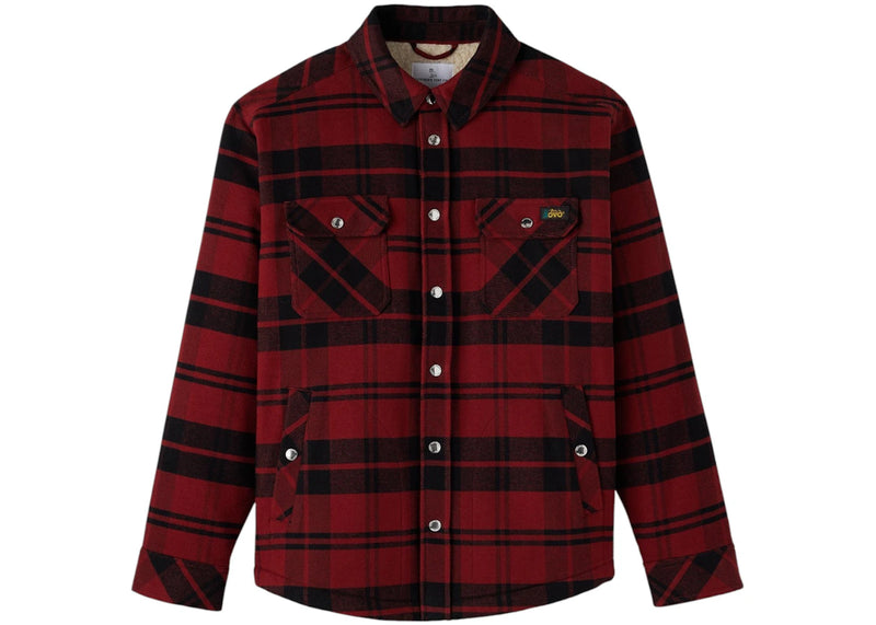 The OVO Sherpa Lined Shirt Jacket Red Plaid is now available at Side Kicks!