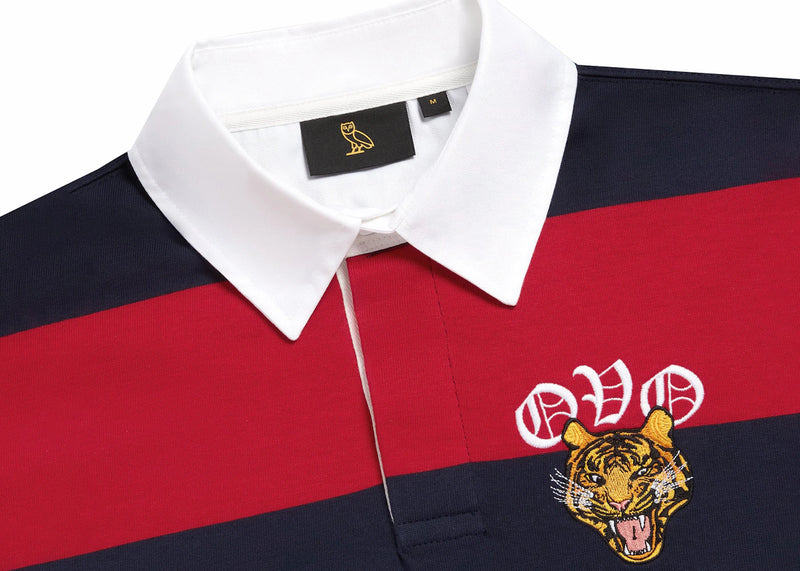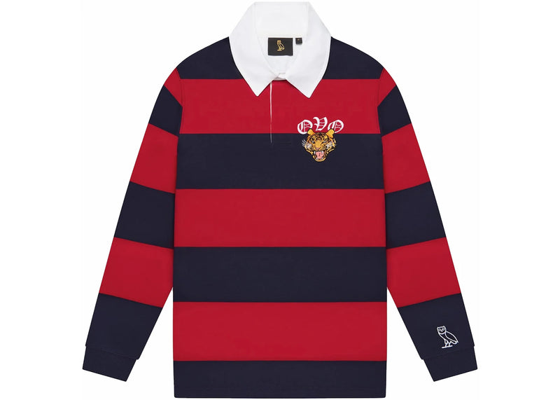 The OVO Striped Tiger Rugby Shirt Red/Navy is now available at Side Kicks!
