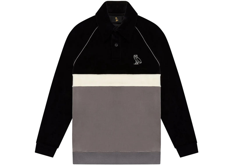 The OVO Velour Longsleeve Polo Black/Gray is now available at Side Kicks!