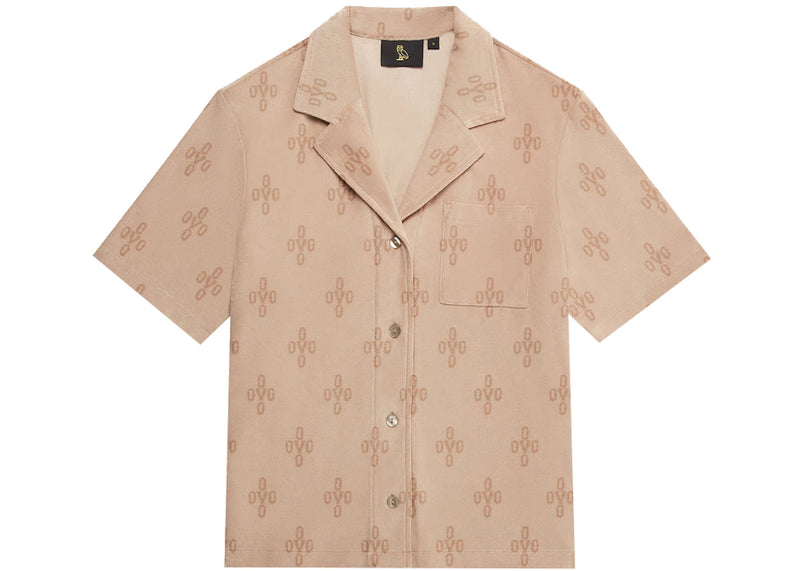 The OVO Women's Monogram Terry Cloth Resort Shirt Beige is now available at Side Kicks!