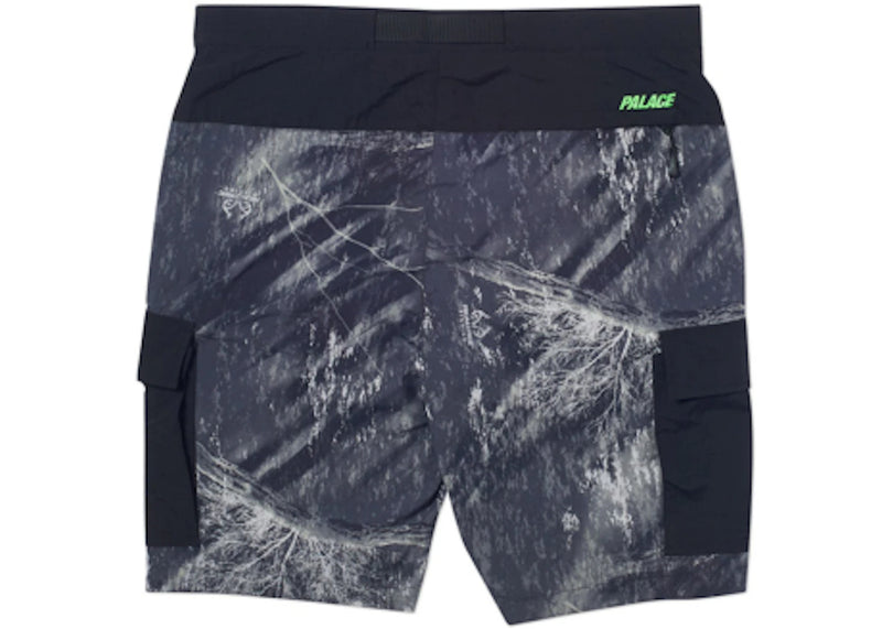 The Palace Asymetric Real Tree Shell Shorts Black is now available at Side Kicks!