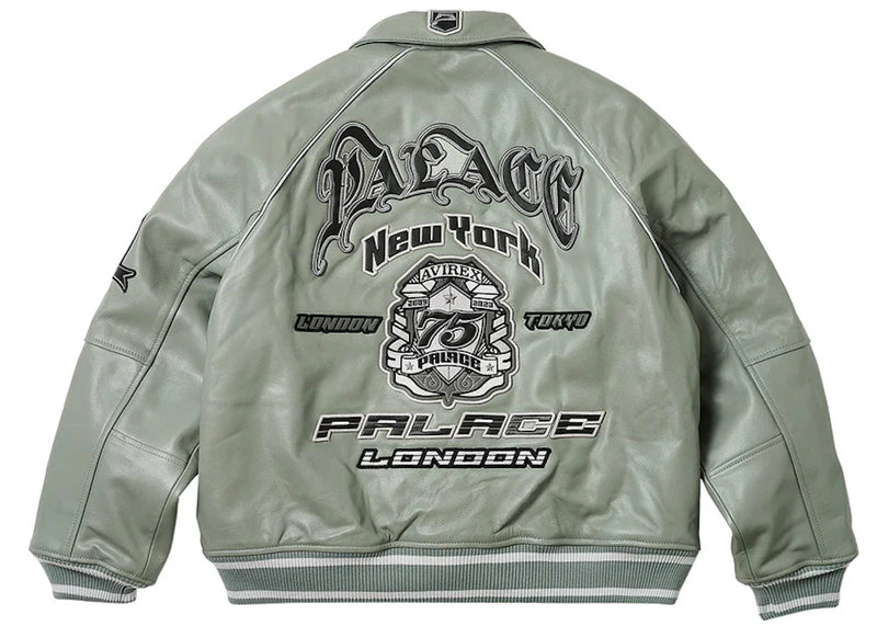 The Palace Avirex Leather Jacket Grey is now available at Side Kicks!