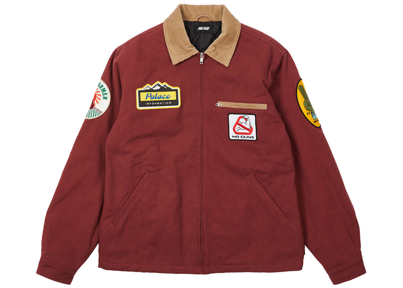 The Palace Badge Work Jacket Wine is now available at Side Kicks!