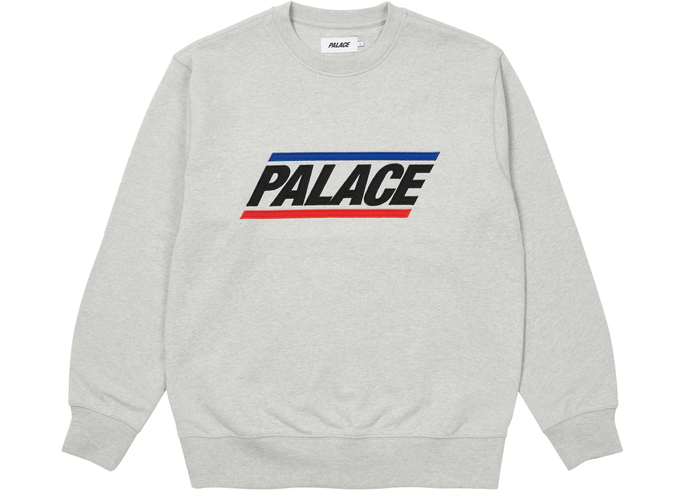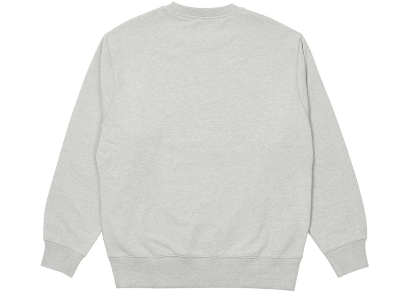 The Palace Basics Logo Crew Grey Marl is now available at Side Kicks!