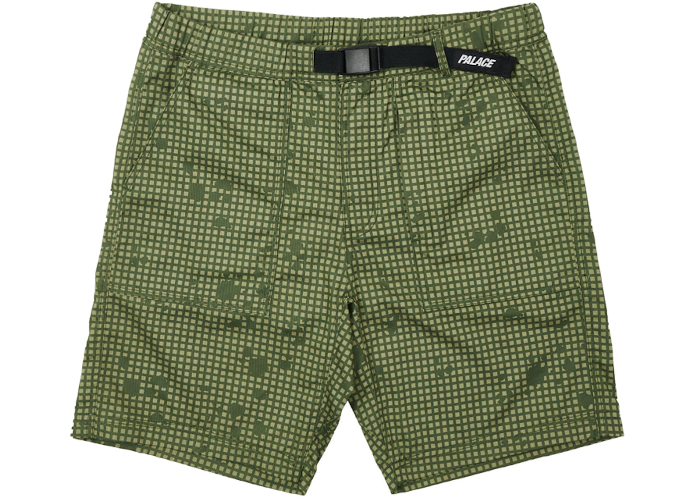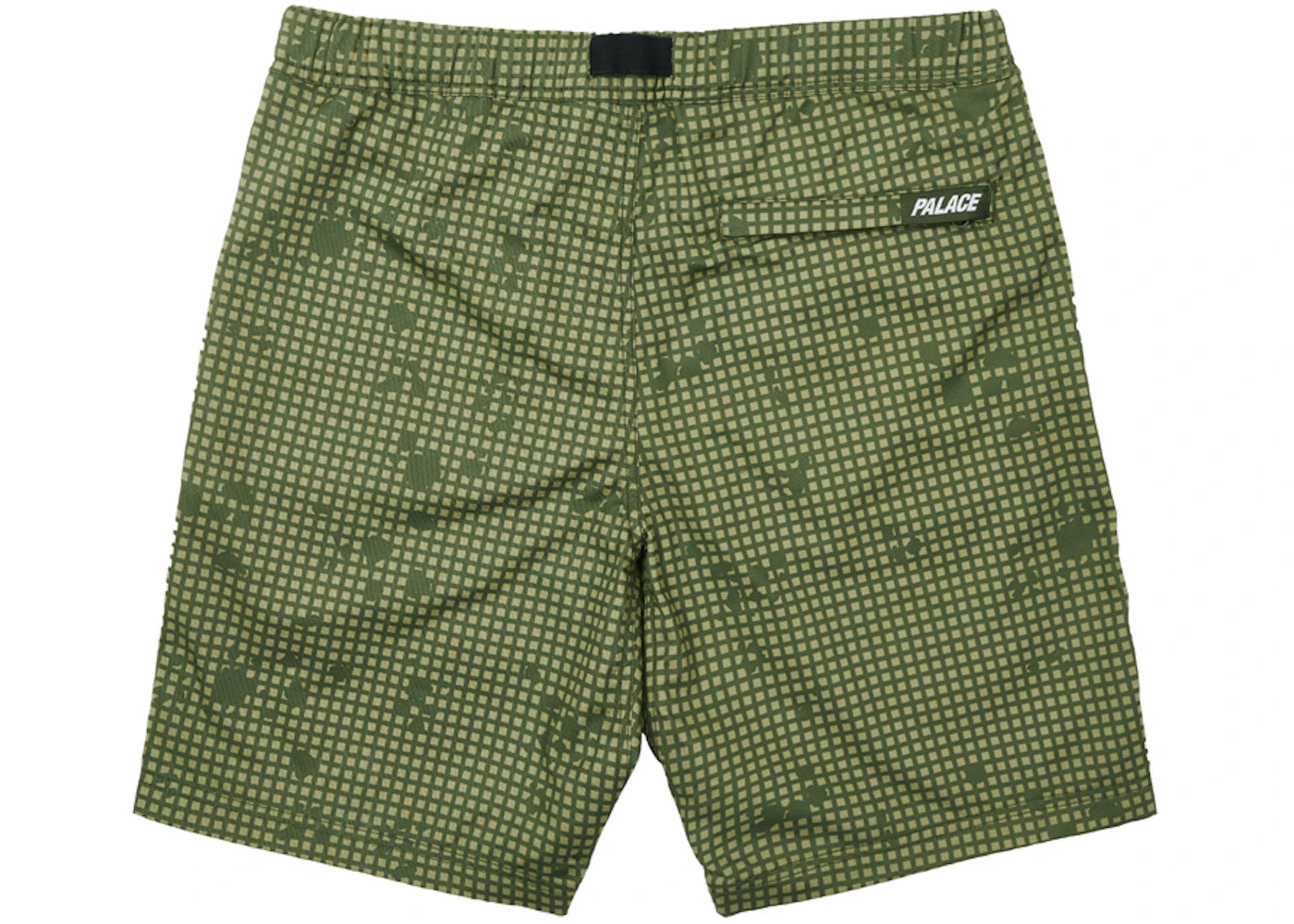 The Palace Belter Shorts Olive Grid DPM is now available at Side Kicks!