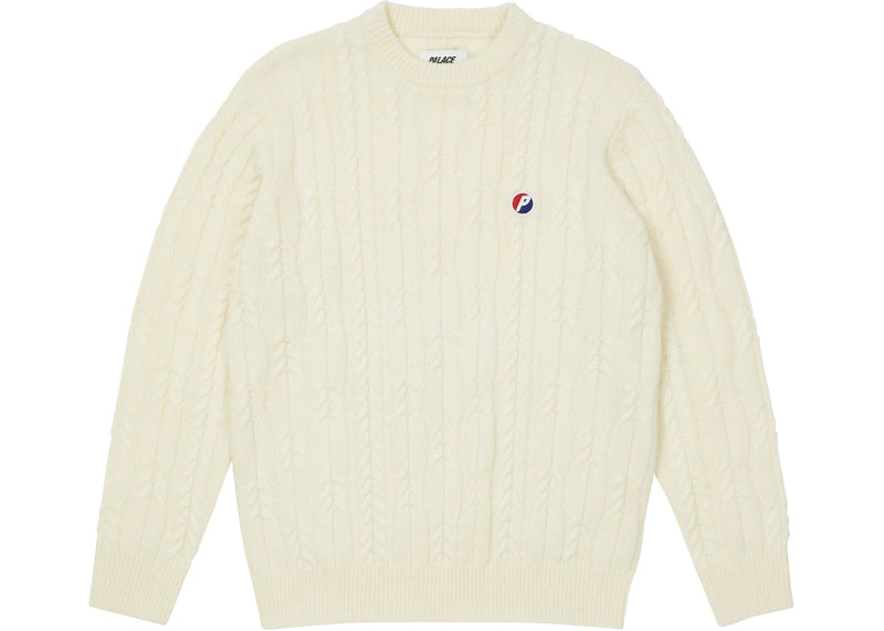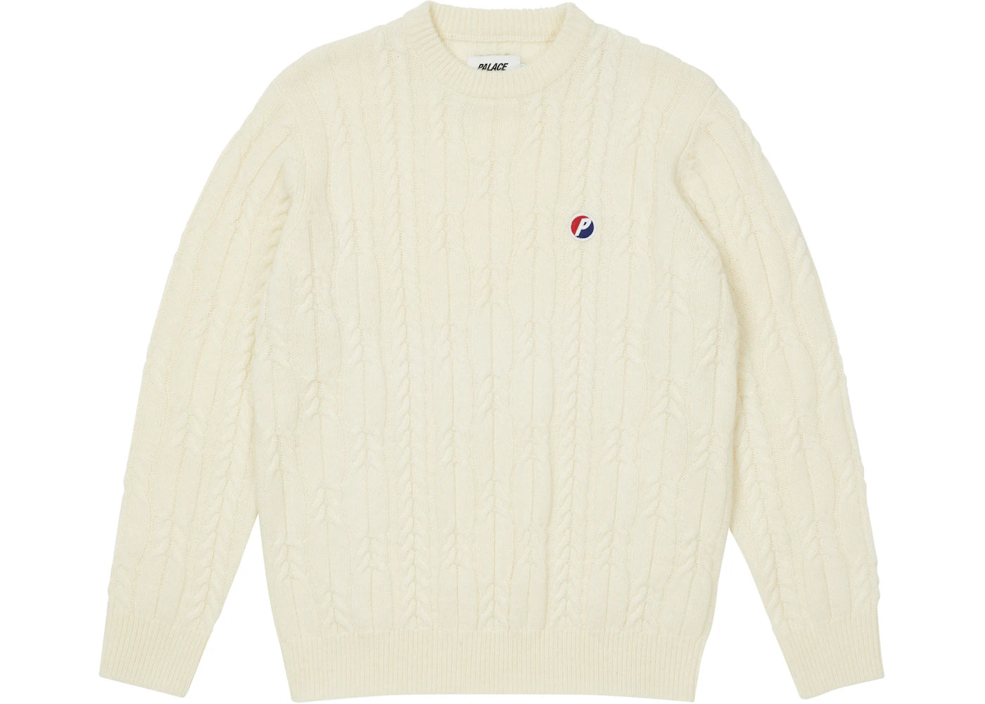 The Palace Cable Knit Cream is now available at Side Kicks!