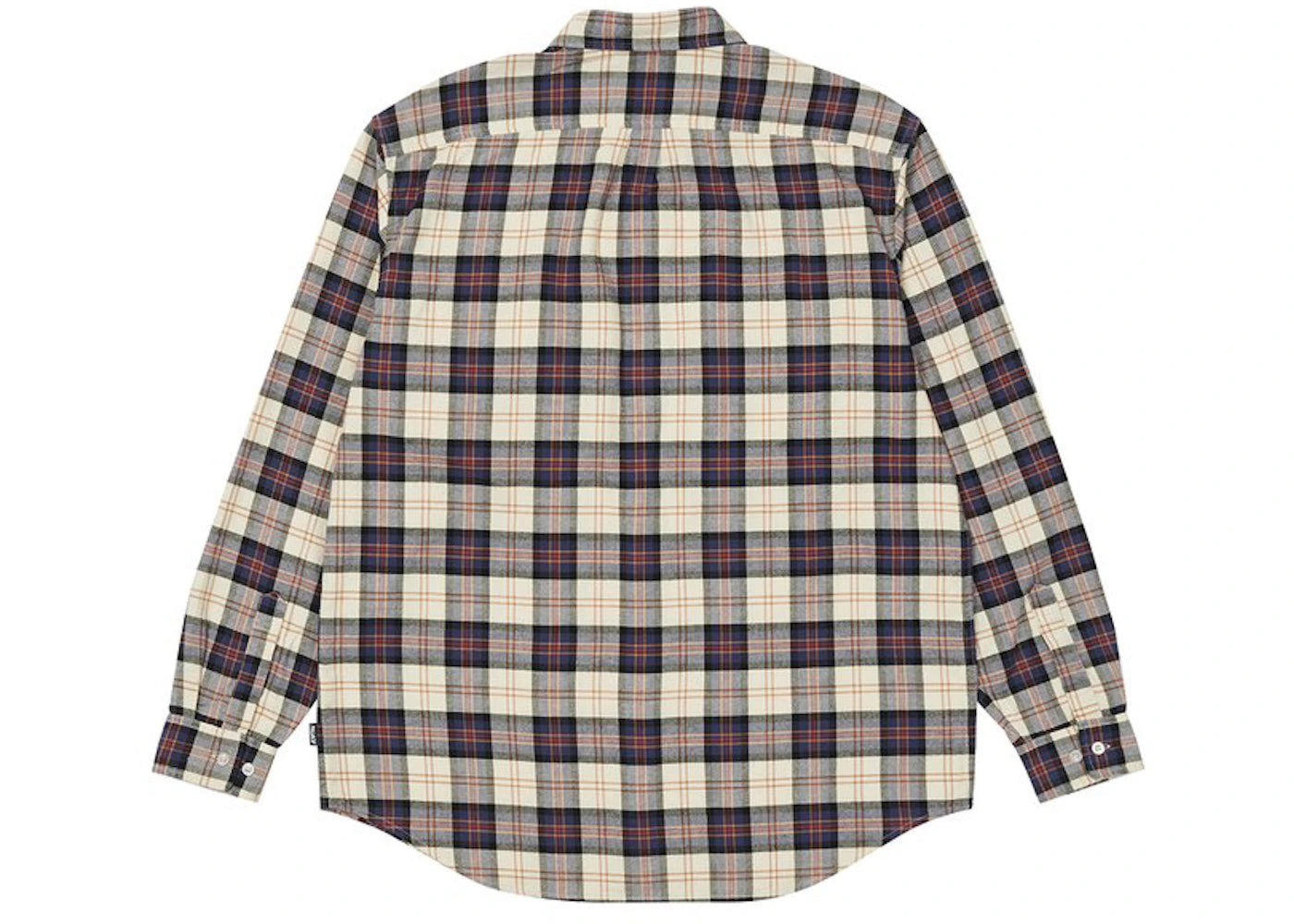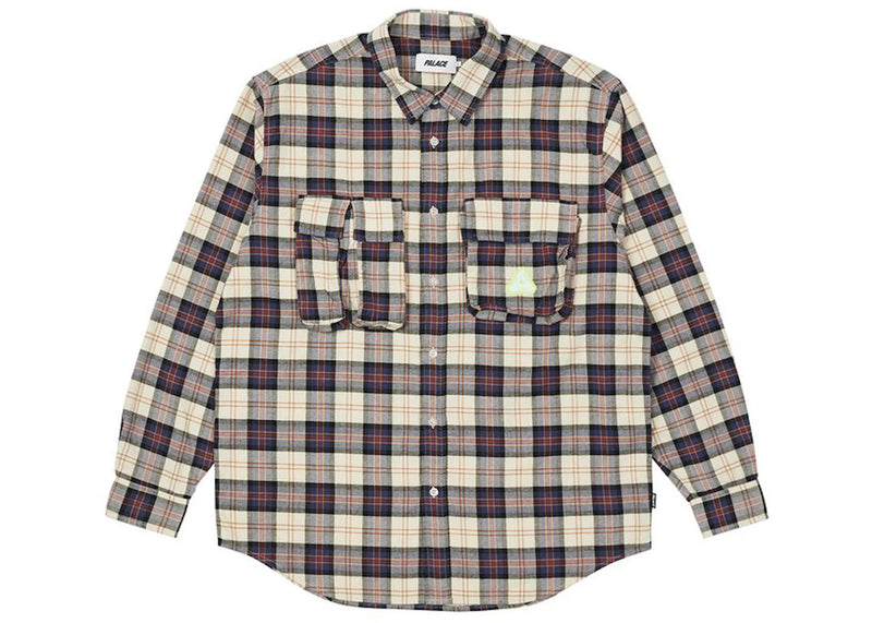 The Palace Cargo Pocket Flannel Shirt Cream is now available at Side Kicks!