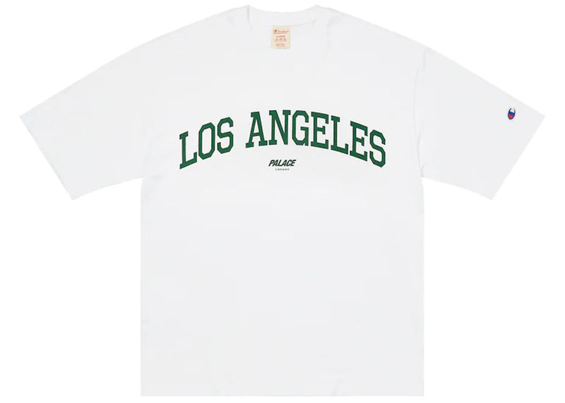 The Palace Champion Los Angeles Shop T-shirt White is now available at Side Kicks!