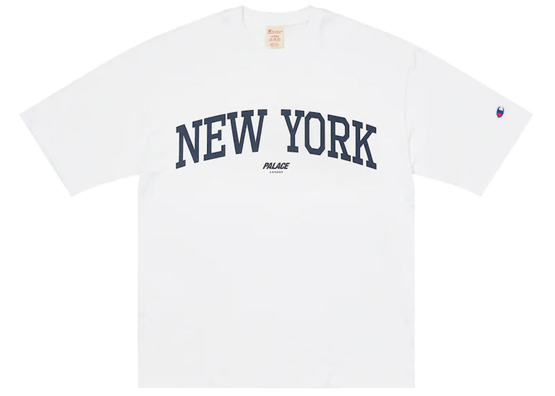 The Palace Champion New York Shop T-shirt White is now available at Side Kicks!