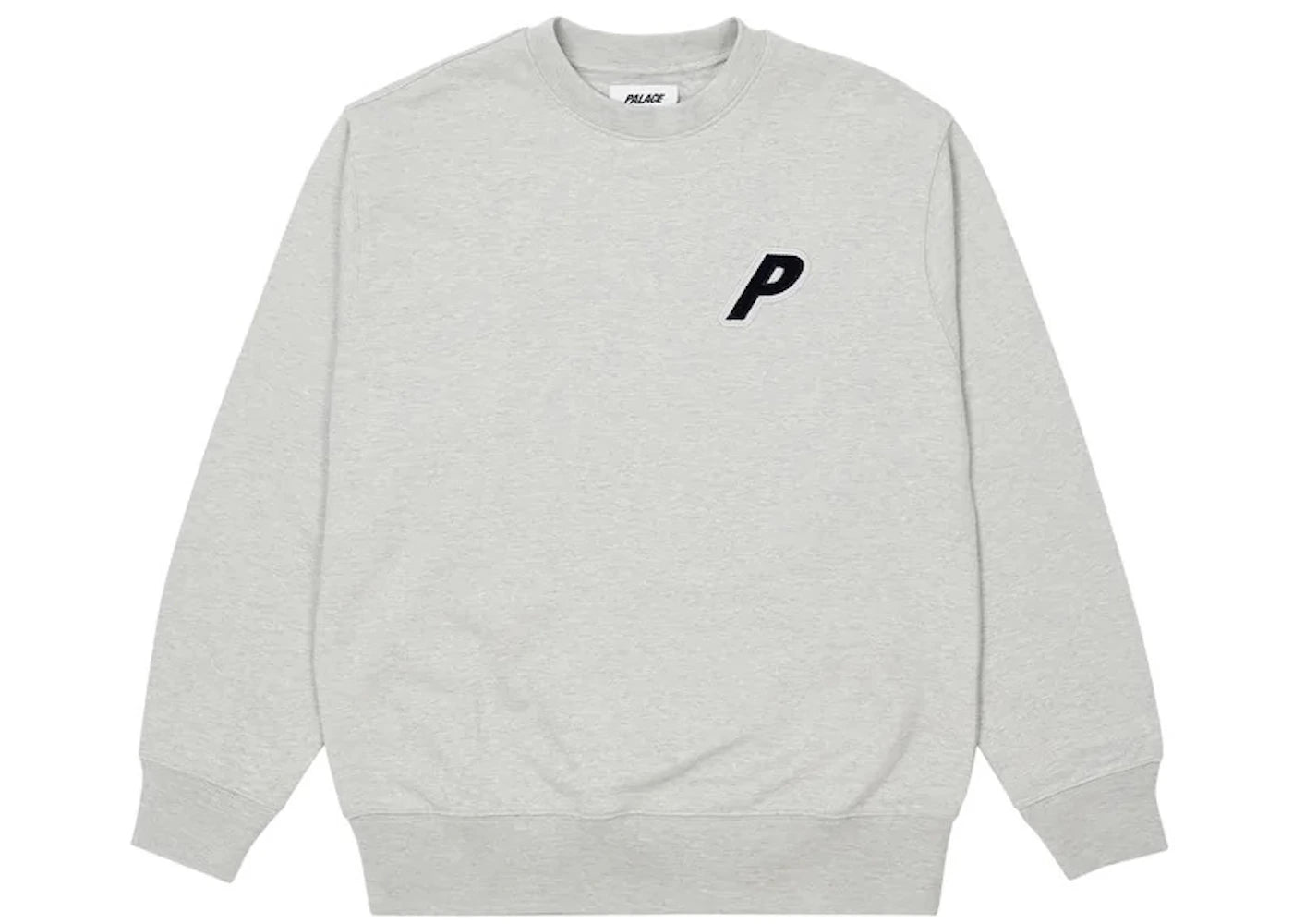 The Palace P-3 Applique Crew Grey Marl is now available at Side Kicks!