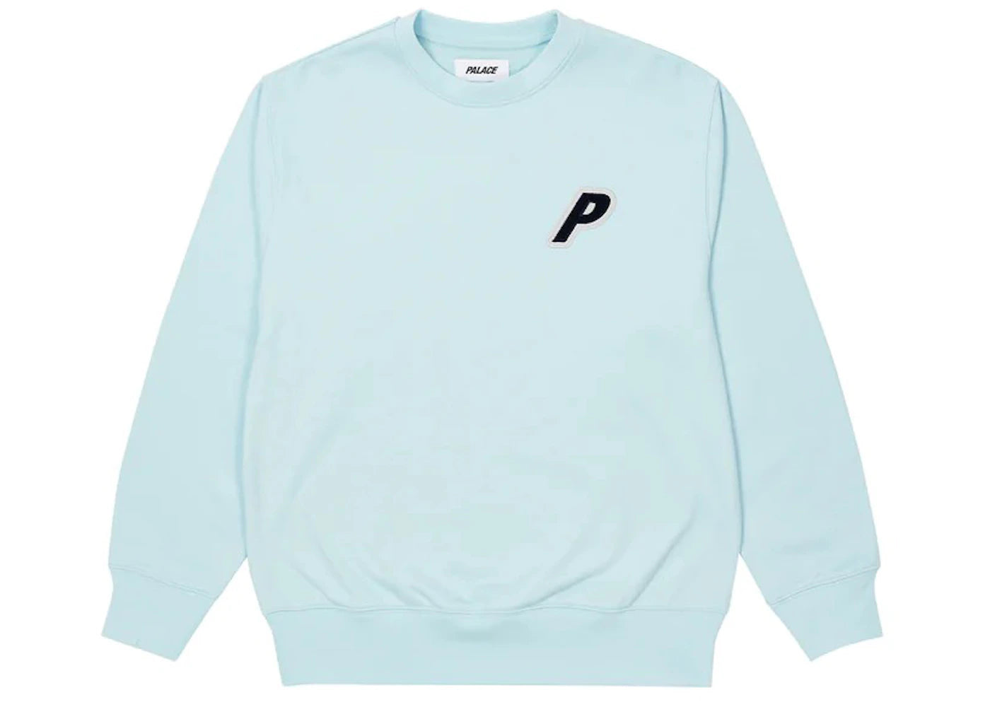 The Palace P-3 Applique Crew Light Blue is now available at Side Kicks!