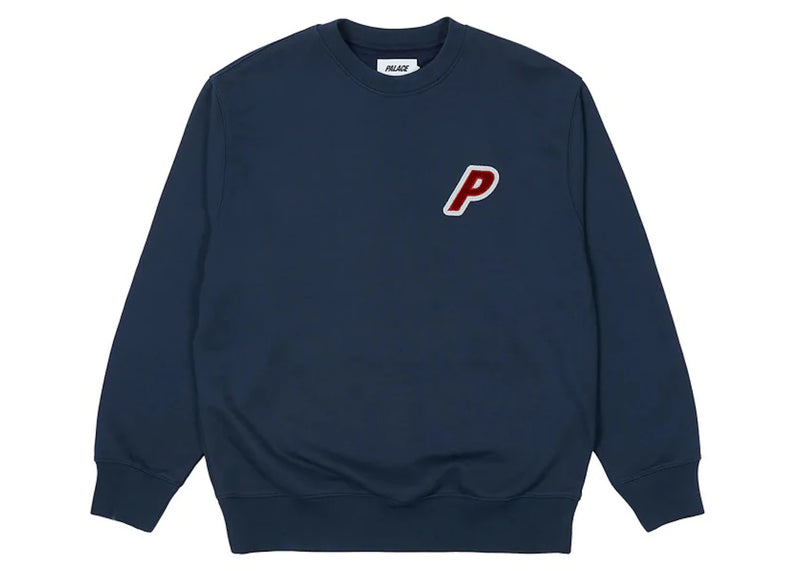 The Palace P-3 Applique Crew Navy is now available at Side Kicks!