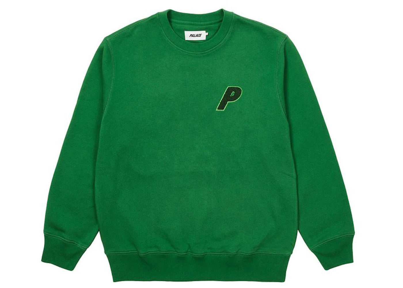 The Palace P-3 Chenille Crew Green is now available at Side Kicks!