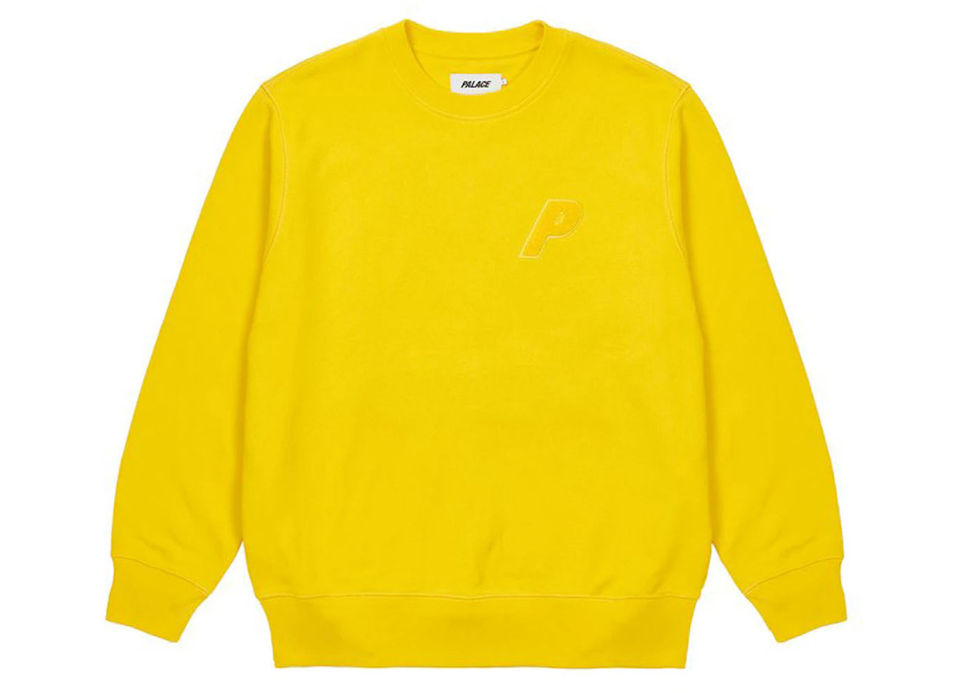 The Palace P-3 Chenille Crew Yellow is now available at Side Kicks!