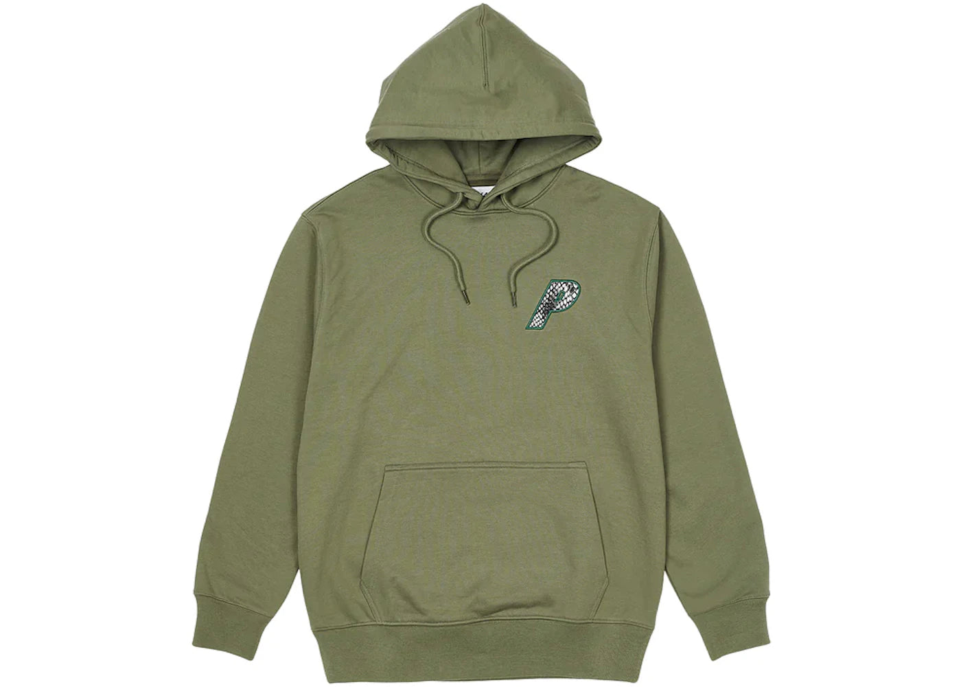 The Palace P-3 Snake Applique Hood Olive is now available at Side Kicks!