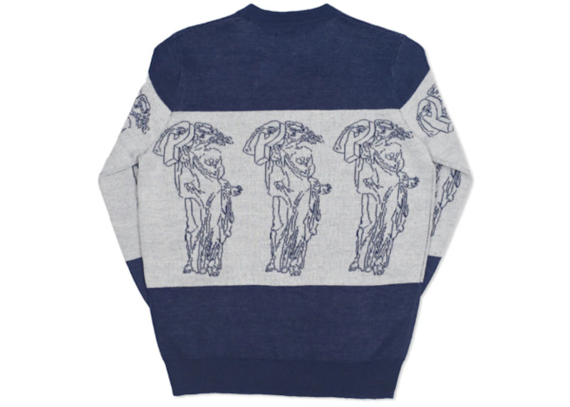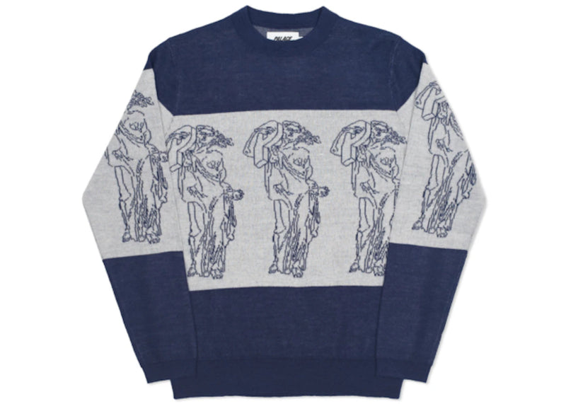 The Palace P Statue Knit Navy/White is now available at Side Kicks!