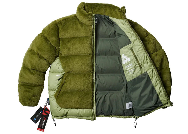 The Palace Polartec High Loft Puffa Olive is now available at Side Kicks!