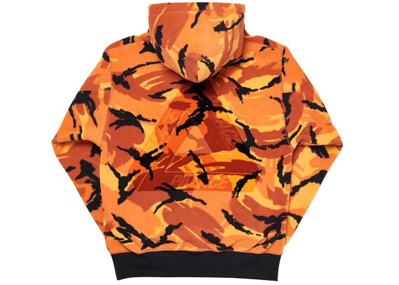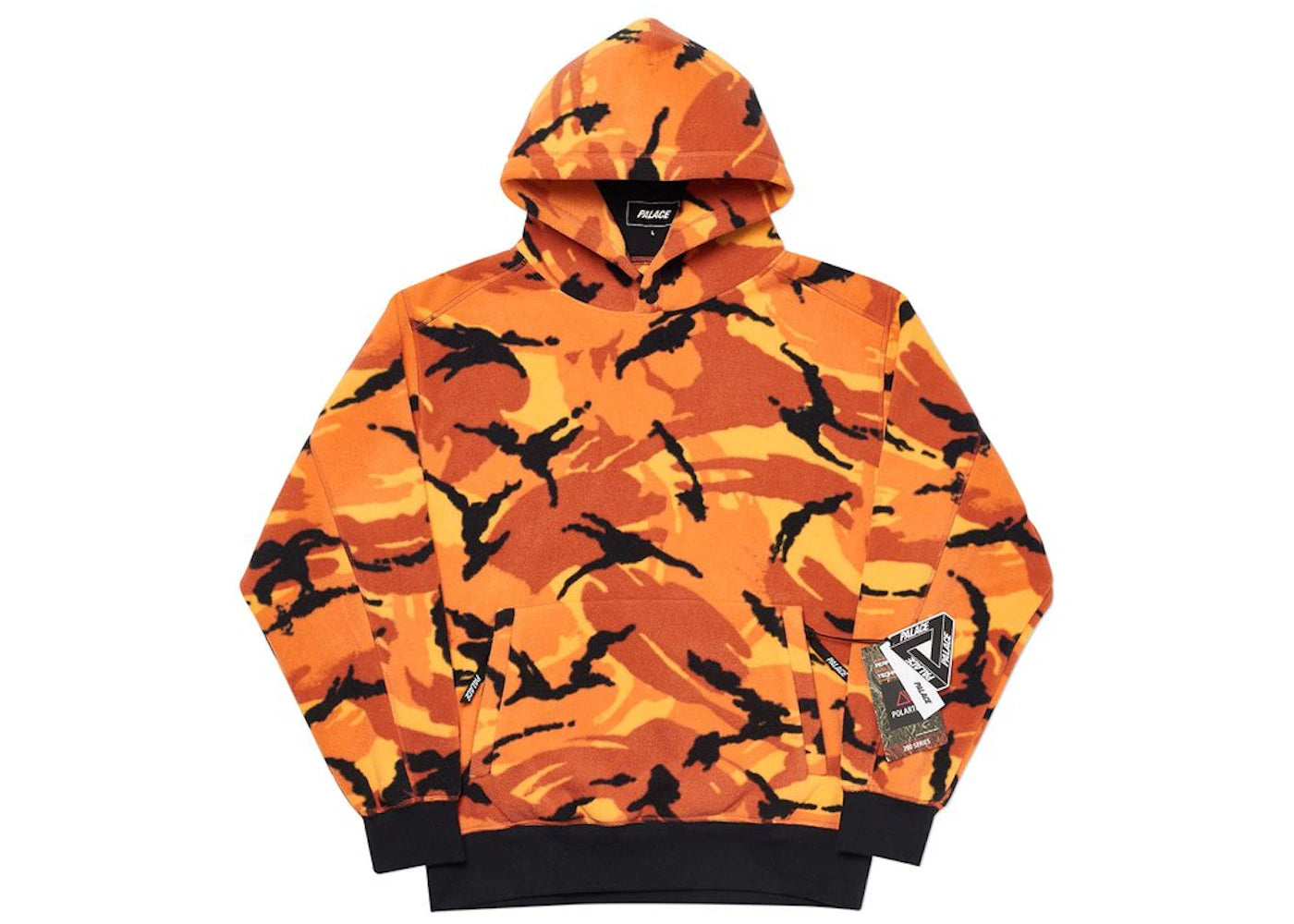 The Palace Polartec Lazer Hood Fire Camo is now available at Side Kicks!