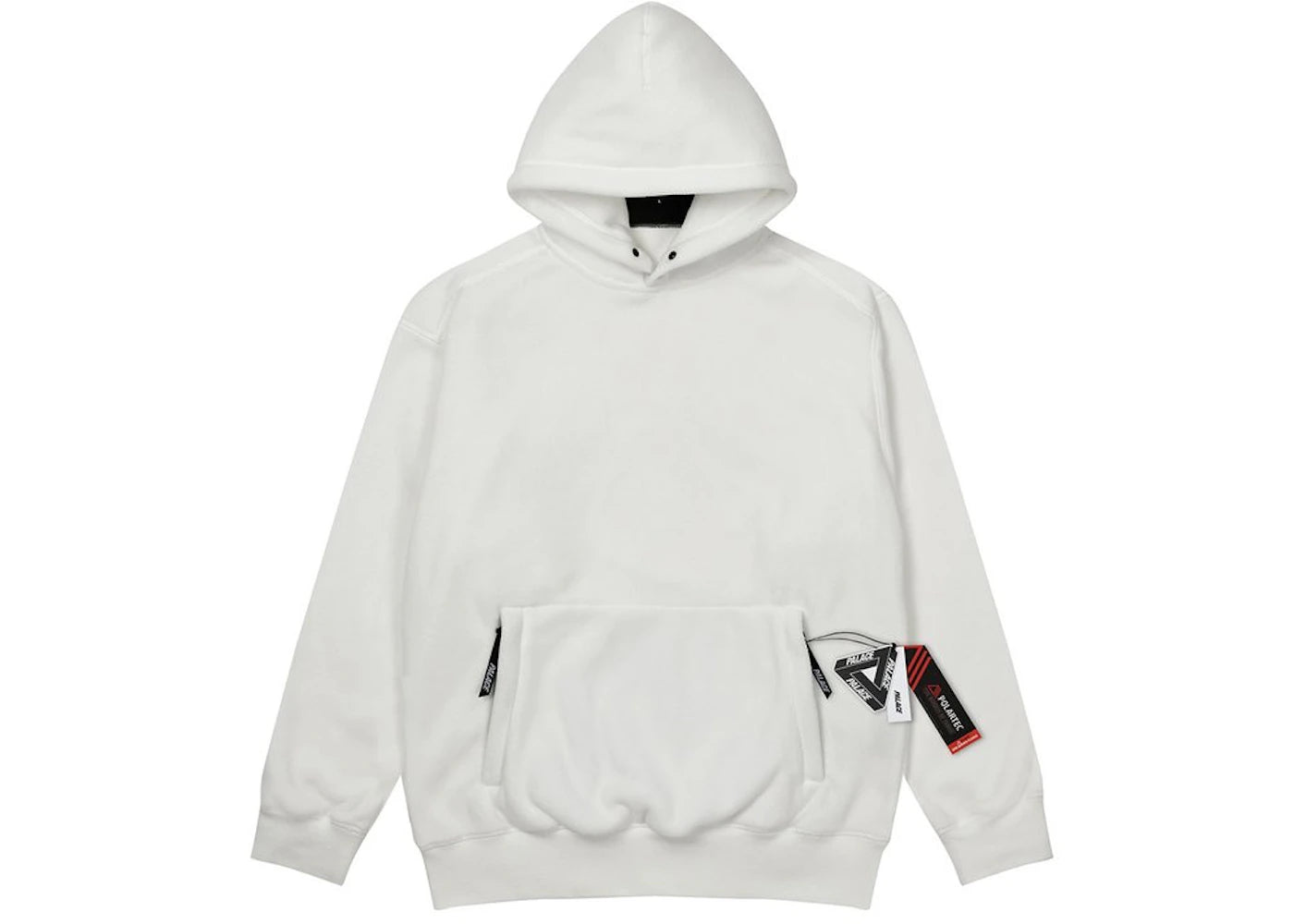The Palace Polartec Lazer Hood White is now available at Side Kicks!