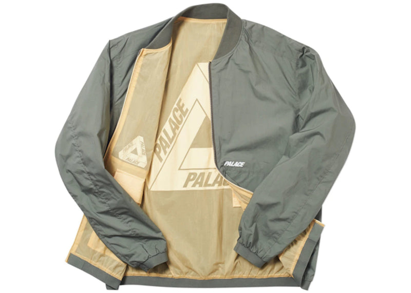 The Palace Reversible Overlay Bomber Olive is now available at Side Kicks!