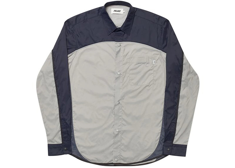 The Palace Shell Out Shirt Grey/Navy is now available at Side Kicks!