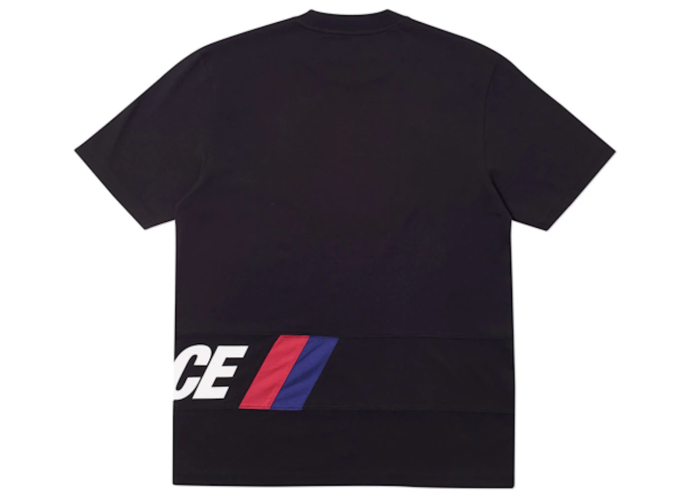 The Palace Tri-Zooted Shakka T-shirt Black showcases the brand's signature triangle logo and bold graphics in pink and light turquoise. It has a crew neck, short sleeves, and features the Hawaiian "shaka" hand gesture, popular among surfers. The design appears on the front left side and spans the full back. Released on August 7, 2020, the Palace Tri-Zooted Shakka T-shirt Black is available now at Side Kicks.