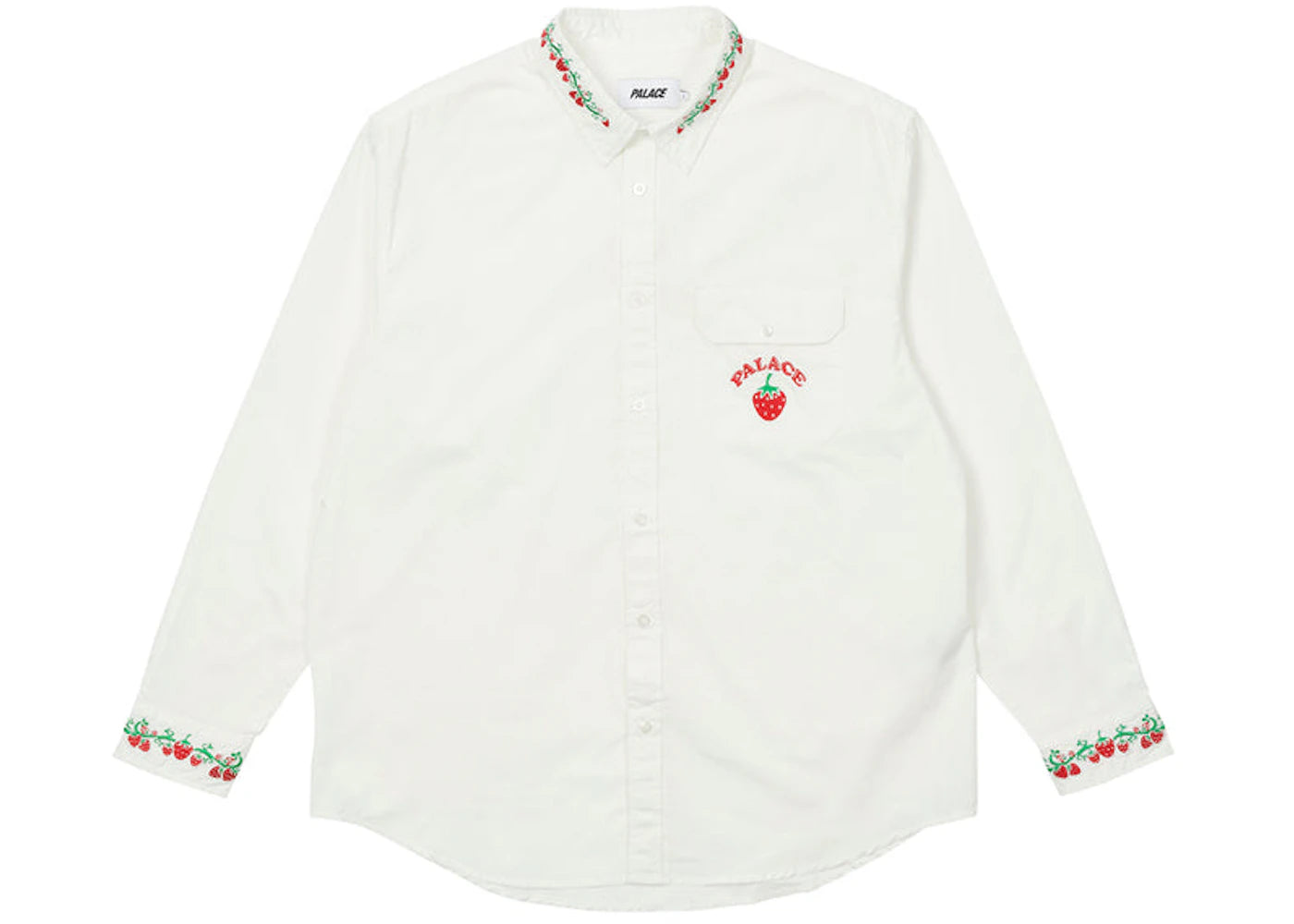 The Palace Strawberry Embroidery Denim Shirt White is now available at Side Kicks!