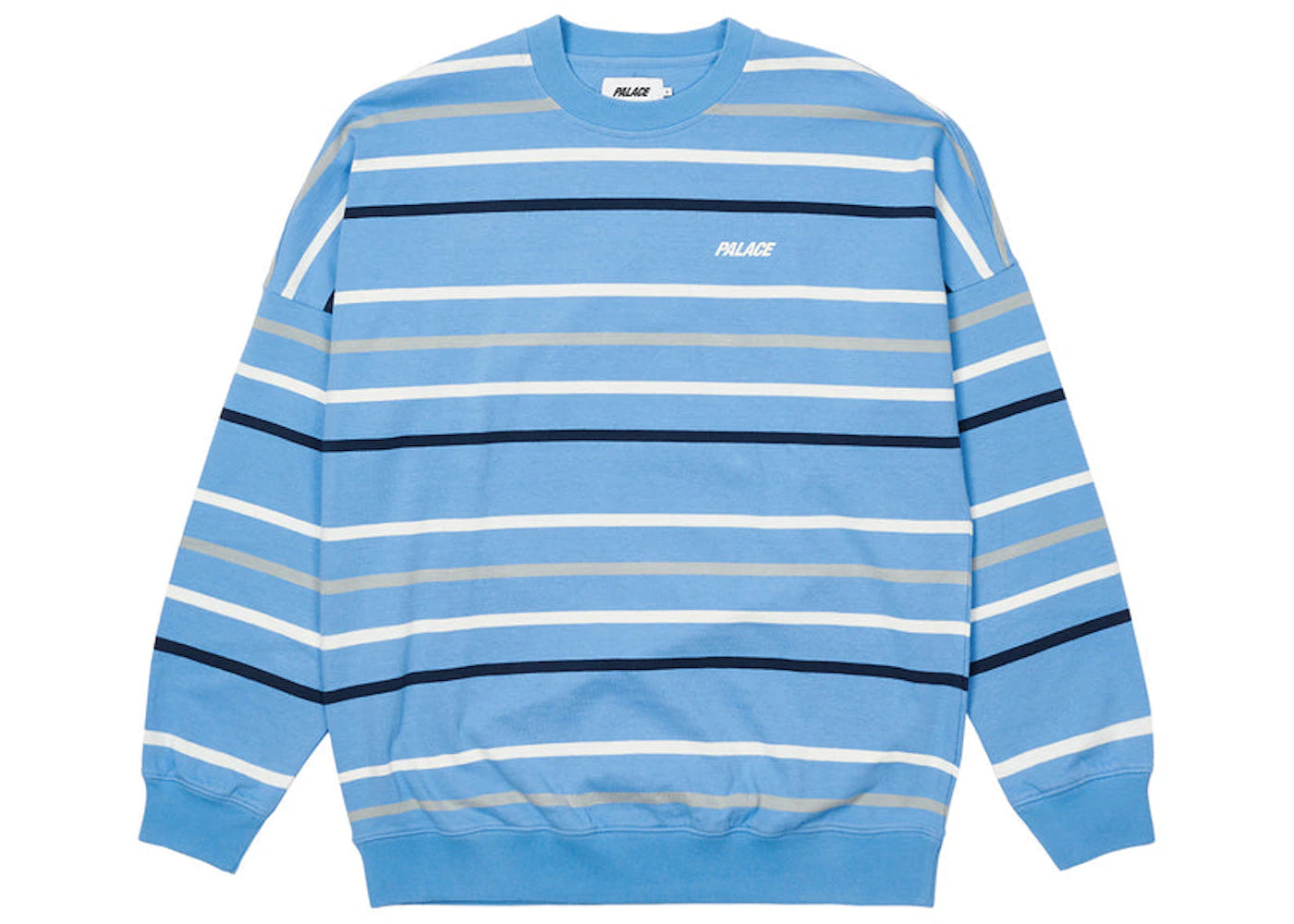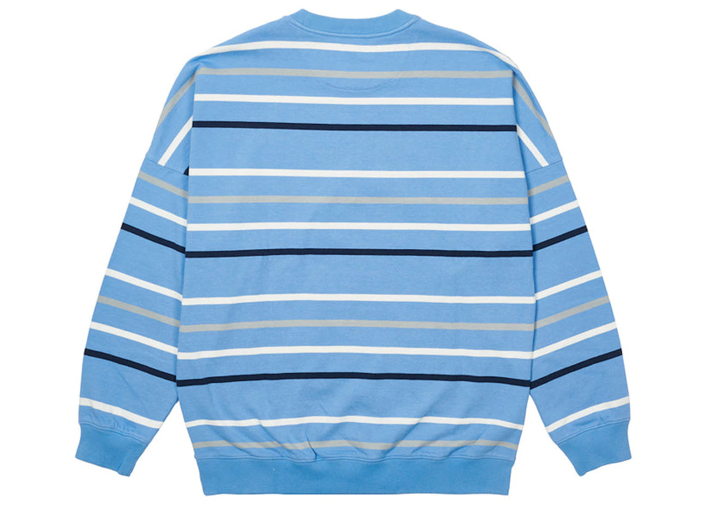 The Palace Stripe Drop Shoulder Crew Blue is now available at Side Kicks!