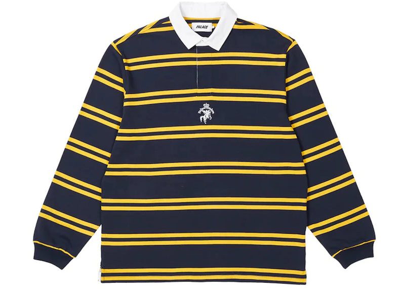 The Palace Stripe Rugby Navy/Yellow is now available at Side Kicks!