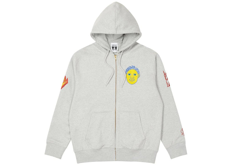 The Palace Suburban Bliss Elf Head Patch Zip Hood Grey Marl is now available at Side Kicks!