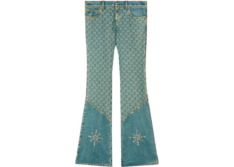 Palace x Gucci Allover GG Pattern And Studs Bootcut Jeans Blue Denim