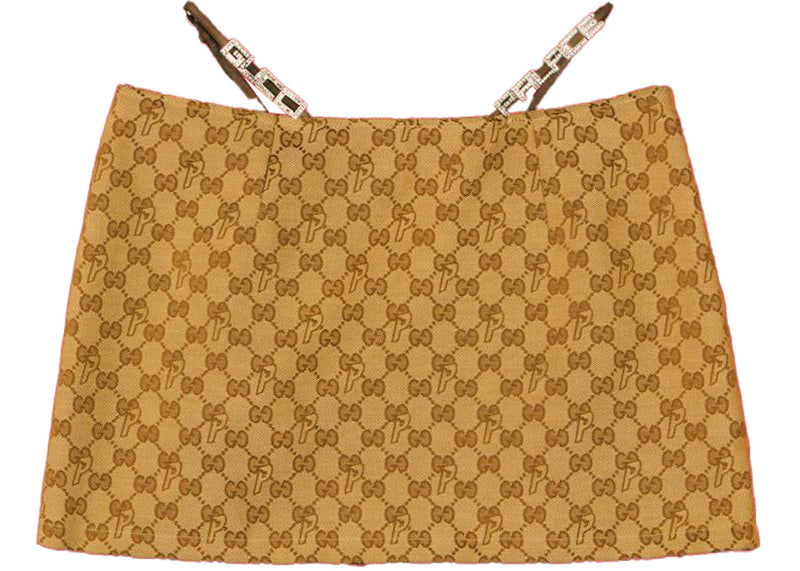The Palace x Gucci GG-P Canvas With Lace And Crystal Mini Skirt Beige is now available at Side Kicks!