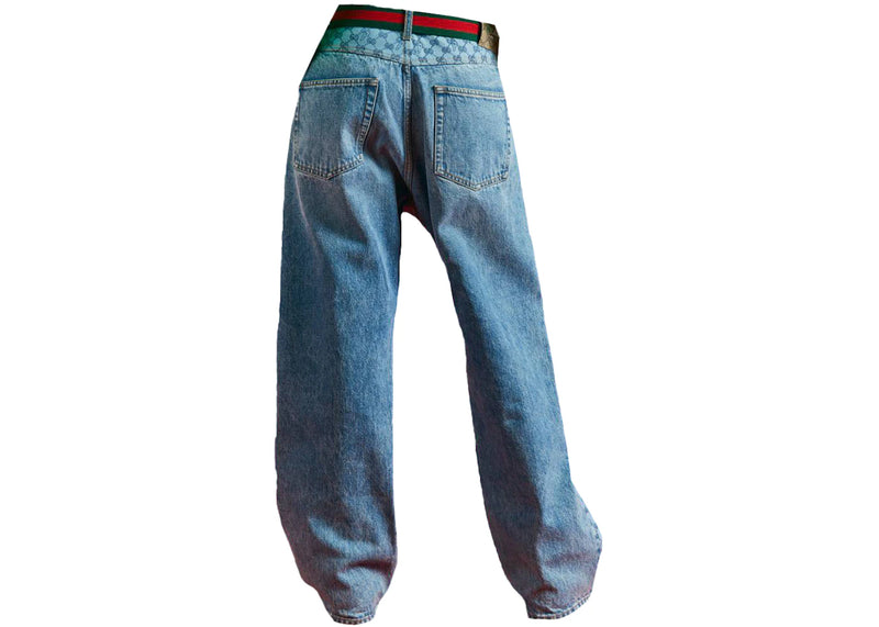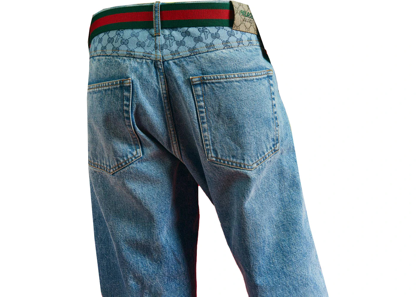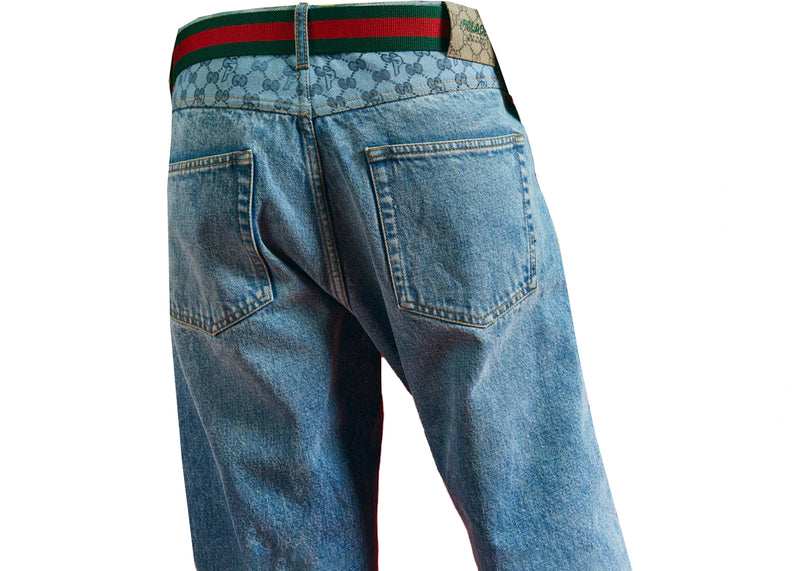 The Palace x Gucci GG-P Pattern Baggy Jean Light Blue Denim is now available at Side Kicks!