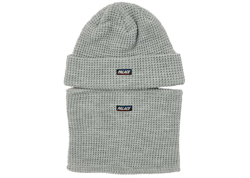 The Palace Zip Off Facemask Beanie Grey Marl is now available at Side Kicks!