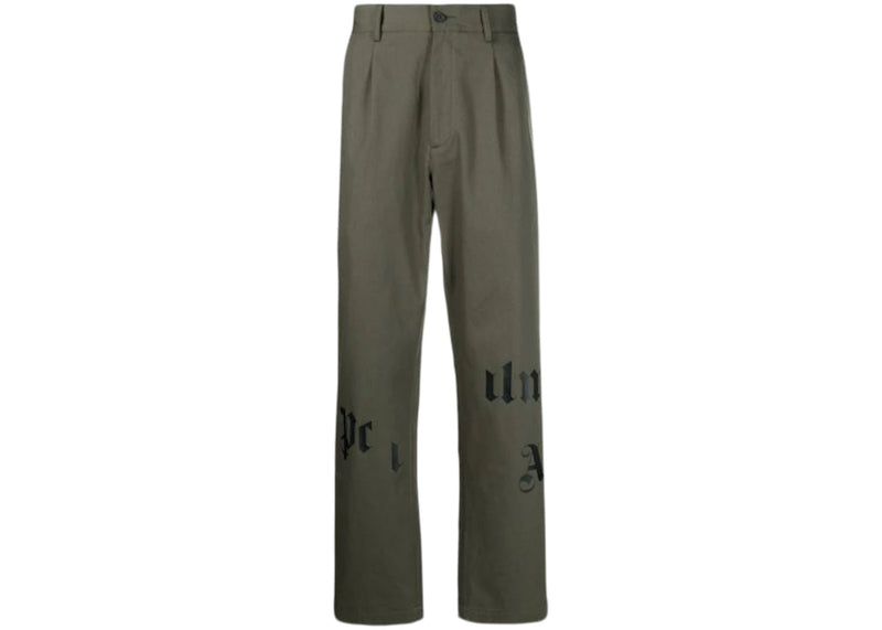 The Palm Angels Broken Logo Pants Hunter Green is now available at Side Kicks!