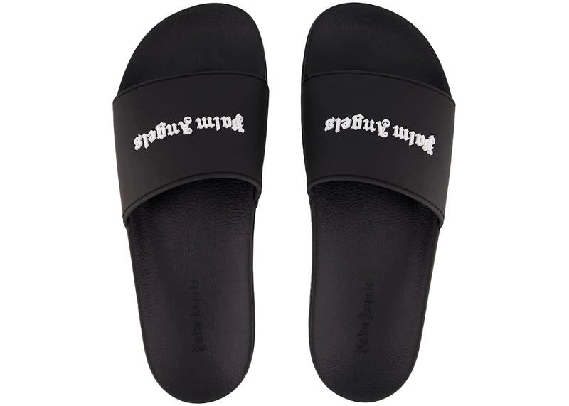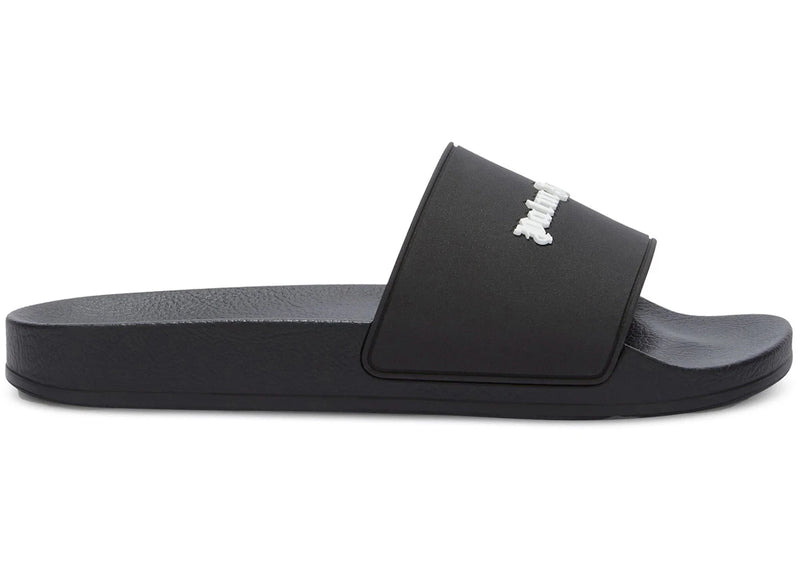The Palm Angels Classic Logo Pool Slides Black White is now available at Side Kicks!